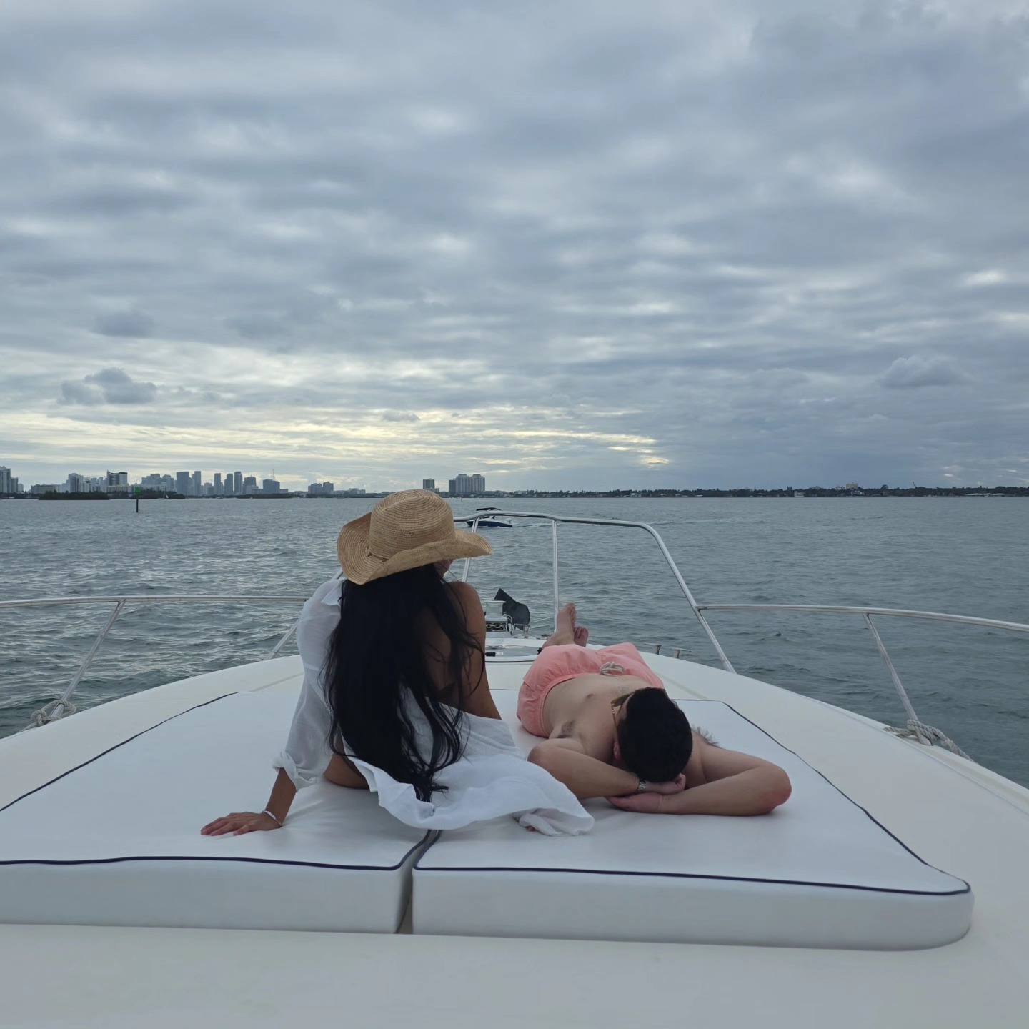 Experience a captivating Miami sunset yacht cruise as you sail through Biscayne Bay and along Miami Beach during golden hour. This 6-hour Miami yacht rental is perfect for couples, families, or groups looking for a relaxing yet luxurious Miami private boat charter. Enjoy calm waters, stunning skyline views, and unforgettable photo moments as the sun sets over the city.